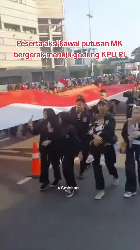 Peserta aksi kawal putusan MK bergerak menuju gedung KPU RI #aminkan #politikbalasbudi #politiktukartambah #hiduppartaiburuh #tolakoligarkipolitik #daruratdemokrasi #kawalputusanmk #abuseofpower #tolakdinastipolitik #tolakoligarkikekuasaan #kimplus