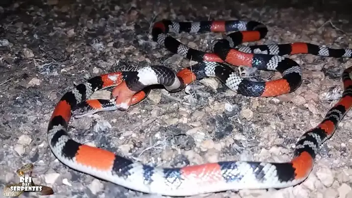cobra coral verdadeira comendo a coral falsa
