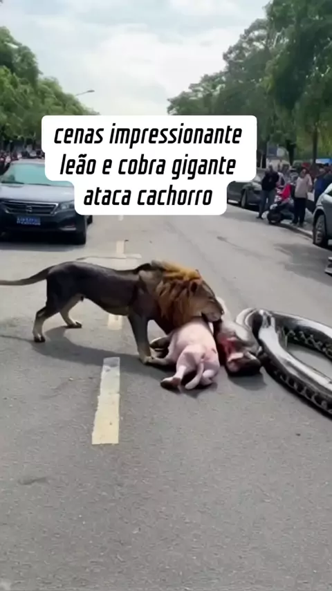 cenas impressionante leão e cobra gigante ataca cachorro