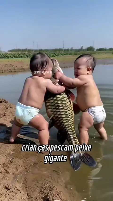crianças pescam peixe gigante