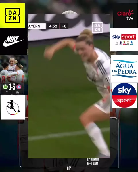 #vflwolfsburg #fcbfrauen #frauenbundesliga 🤩 Alara seals it for Bayern in Wolfsburg! Her late goal puts them 3️⃣-1️⃣ up and on route to first place in the league. Watch live for free on DAZN.com in select territories. #dieliga 🇩🇪🎥👏🎊🎉