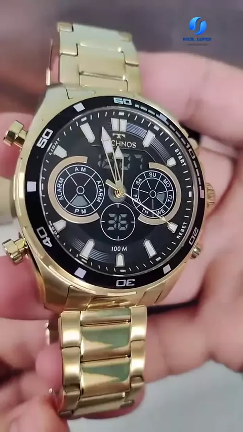 RELÓGIO MASCULINO DE AÇO DOURADO COM FUNDO PRETO PALLYJANE À PROVA D'ÁGUA - ENVIO RÁPIDO GARANTIDO