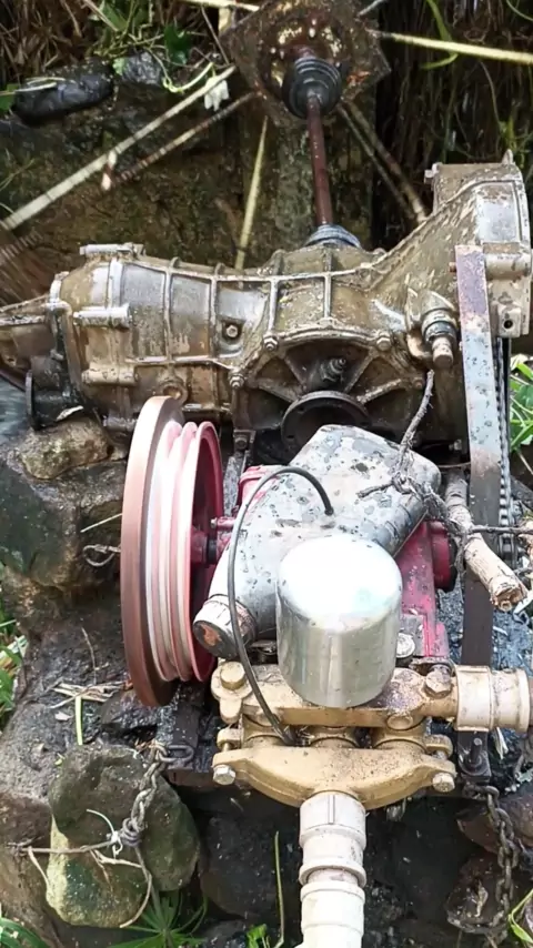 #roda d'água caseira com caixa de marcha do gol quadrado e bomba de lava jato #lfmazim #projetosArtesanais