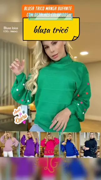 Blusa de frio tricô com mangas bufantes e detalhes coloridos #festakwai #modafashion #modafemenina #trico #EstrelaDeFamília
