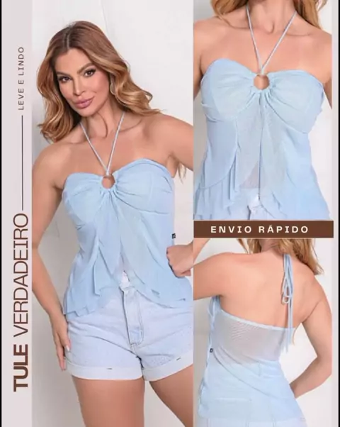 Blusa Bata Única em Tule Casual Chic, Premium Amarração Assimétrica Blusinha Tendência Verão Lançamento. #BLUSA #Blusinha
