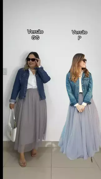 Look plus size fashion com saia de tule e jaqueta jeans #plussize #moda #fy