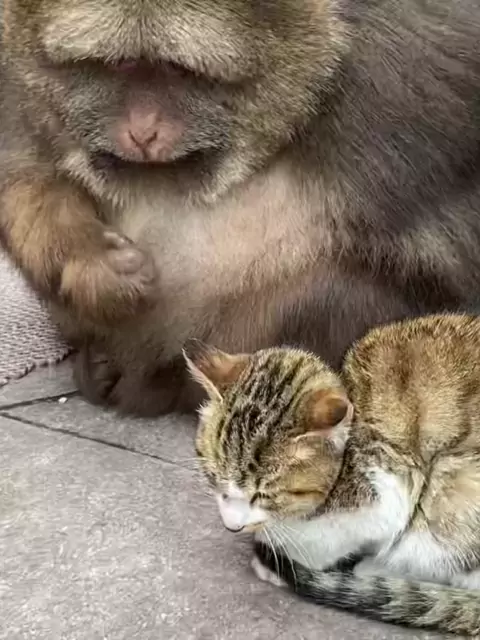 Xingxing e seu amigo gato # macaco # bonito # bebê # para você