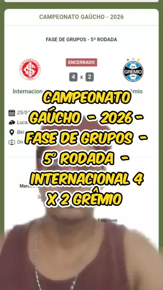 #SEJAUMCRIADOR #FUTEBOL #CAMPEONATO #GAÚCHO 2026 FASE DE GRUPOS - 5° RODADA INTERNACIONAL 4 X 2 GRÊMIO