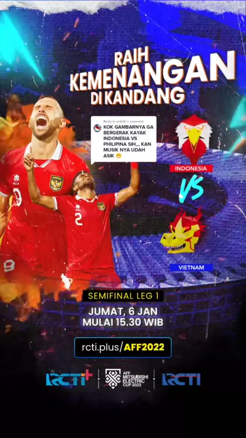 Replying to @erdefir Ayo Indonesia! #RCTIPlusSports #inewstv #rctisports #AFF #AFFCUP #AFFCUP2022 #AFFMitsubishiElectricCup2022