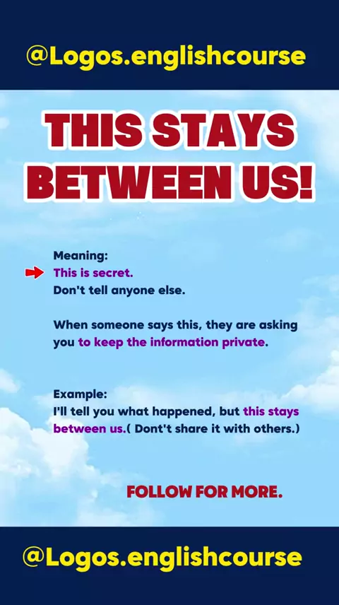 This stays between us: This is a secret.#onlineenglishlessons#belajarbahasainggris#englishtips4u#learnenglishonline#vocabularybuilding