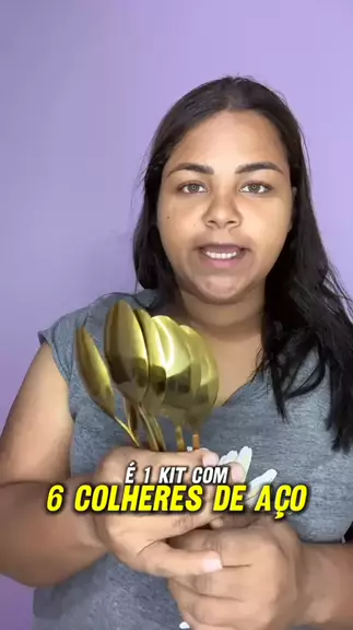 Kit 6 colheres de aço inox dourada