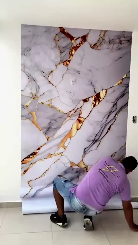5 M Papel de Parede Mármore Dourado e Branco 3D Lavável Adesivo Autocolante para Sala, Quarto