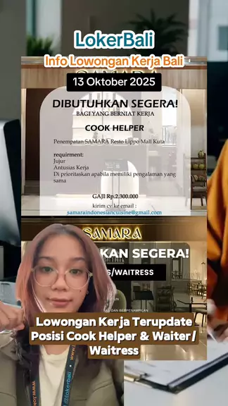 Loker terbaru di Bali! Posisi Cook Helper, Waiter & Waitress #lokerbali #lowongan #lowongankerja #lowongan #kerja