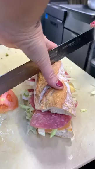 MILANO SANDWICH: Baguette bread, hard salami, artichoke heart, Manchego cheese, lettuce, tomatoes, thousand island & mustard! π₯ #baguette #italian