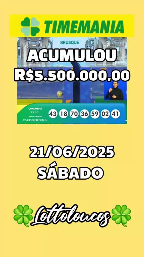 TIME MANIA Acumula Prêmio Alcança R$5,5 Milhões Segue o Resultado Atualizado do Concurso de Hoje. #TimeMania⚽️ #Acumulou🍀 #Loteria🍀 #ResultadodeLoteria🍀 #LOTTOLOUCOS🍀