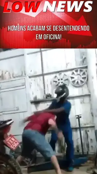 Sem muita conversa já começam com, bons socos, fortes e certeiros,o homem não se importa com a presença de um capacete e segue a luta. #Notícia #fofoca #Oficina #News #briga