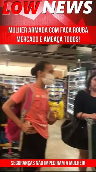 Mulher armada com faca ameça seguranças e clientes de um supermercado e sai roubando toda mercadoria que ela quer e não foi impedida por nenhum segurança! #Notícia #News #Crime