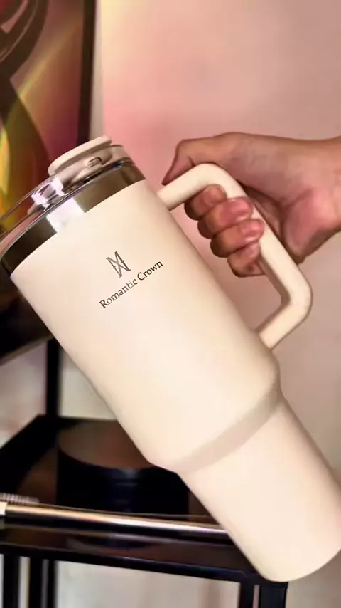 Copo térmico grande de aço inoxidável de 1200 ml (com tampa e canudo), padrão de mármore, alça portátil, adequado para esportes, fitness