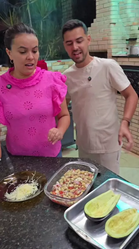 Uma parceria incrível e uma receita maravilhosa. Vinagrete de berinjela 2 berinjelas 1 tomate 150 g de presunto 150 g de mussarela 120 ml de vinagre de álcool 150 ml de água Tempero a gosto #Diadospais #KwaiChef #maisviews #vidasimples @Du Cavalcante(O150001446709837)