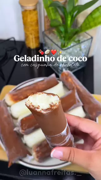 Geladinho de coco com casquinha de chocolate 😋 #receitas #Doces #sobremesa #geladinho #viral