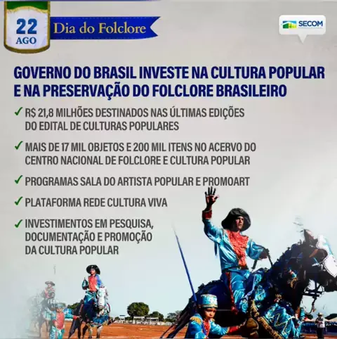 🐂⚔️💃 DIA DO FOLCLORE Na data que celebra os diferentes saberes, mitos e crenças populares do Brasil o Governo Federal relembra os investimentos feitos nos últimos anos para preservar as tradições brasileiras. Saiba mais em: https://bit.ly/2WdErD5 📲 Compartilhe nas redes sociais. Twitter: https://bit.ly/3mmfrUW Instagram: https://bit.ly/3B3LXQ0 Facebook: https://bit.ly/2WdErD5🐂⚔️💃 DIA DO FOLCLORE Rico em tradições, culturas, mitos e crenças populares, o Brasil tem histórias, danças, c