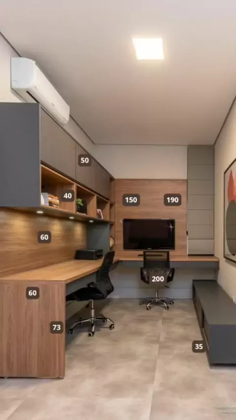 💡 Dica de dimensões para seu novo home office moderno. 👉🏻 Não esqueça de me seguir, estou sempre postando dicas de dimensões. @arq.luizgamm #arquitetura #designerdeinteriores #moveisplanejados #homeoffice