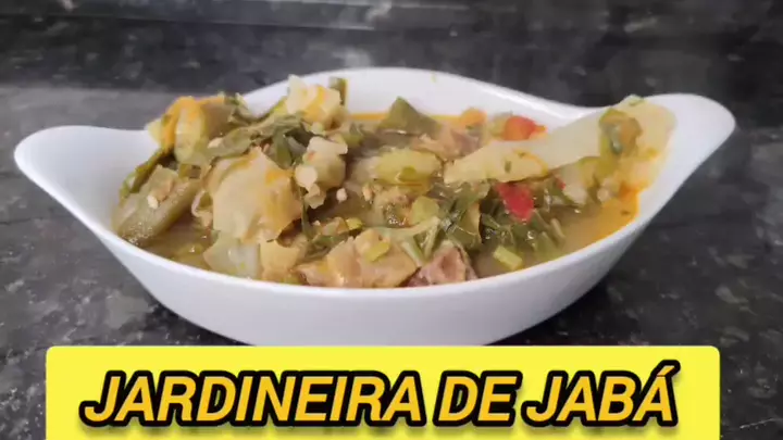 Jardineira de Jabá 800 gramas de Jabá 1 cebola 3 dentes de alho 1 pimentão 3 Pimenta de cheiro Tempero Edu Guedes Pimenta do reino Alho frito 1 tomate 🍅 Coloral 1 cenoura grande 2 batatas inglesas 300 gramas de Jerimum ( abóbora cabotia ) 1/4 de repolho 1 maço de couve 🥬 6 maxixe 6 quiabo Cheiro verde a gosto Seguir a receita 😋 #Receita #JABÁ #charque #Manaus #viral