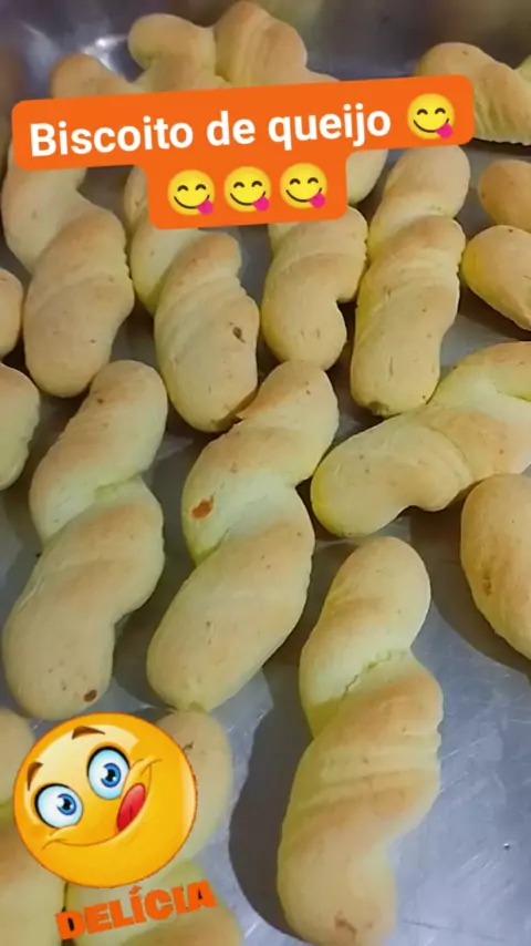 #Biscoito de queijo ๐๐๐ ficou uma delรญcia ๐๐๐ Receita: 4 copos americano de polvilho, 1 copo de leite gelado, misture no polvilho, desmanche os gruminhos que formar, esquente 1 copo americano de รณleo quente menos um dedo do copo, 3 copos americano de queijo ralado, sal, 3 a 4 ovos dependendo do tamanho. Amassar bem, modelar os biscoitos e levar para assar em assadeira untada, forno 200graus.๐