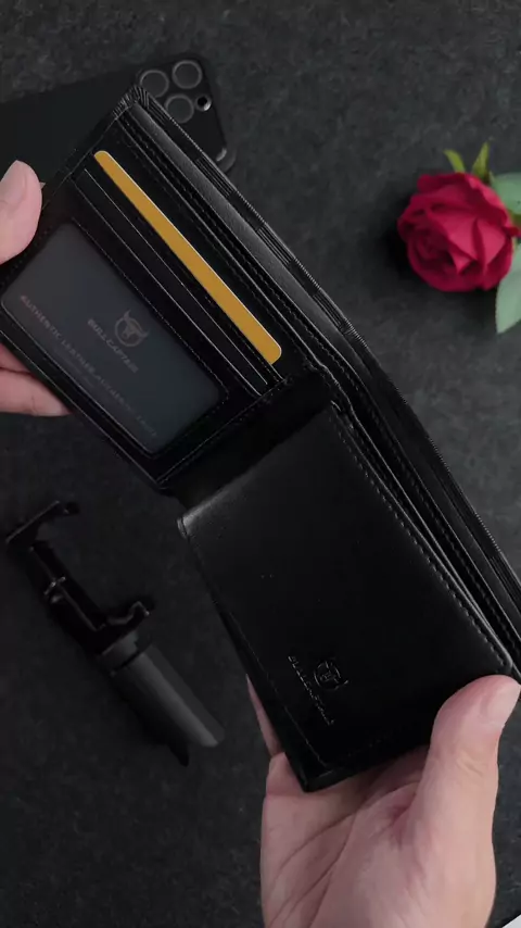 BULLCAPTAIN Men's short genuine leather wallets, thin card holders, fashionable coin purses, credit card holders, and document holders.