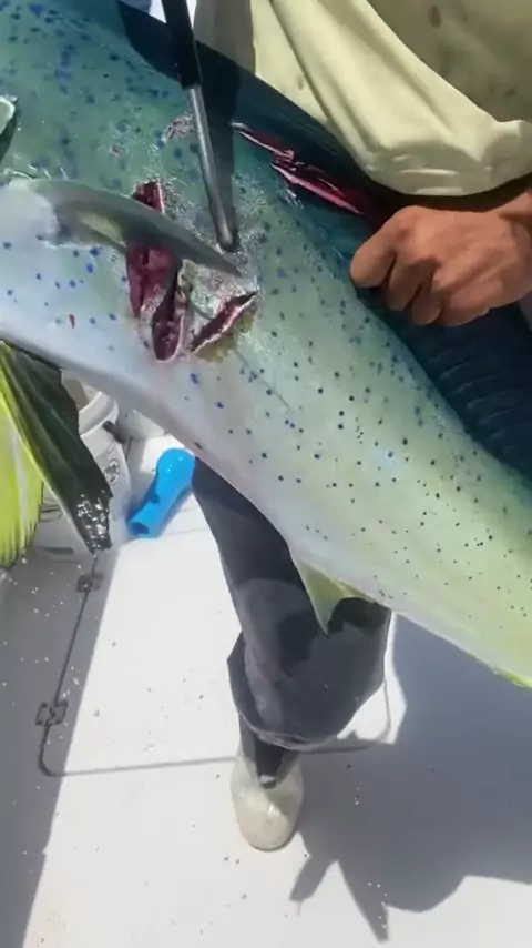 Mahi gigante sobrevive a mordida de tubarão!!! # katespadenyhappydance # gaffing # gaff # fish # fishing # mahi # mahimahi