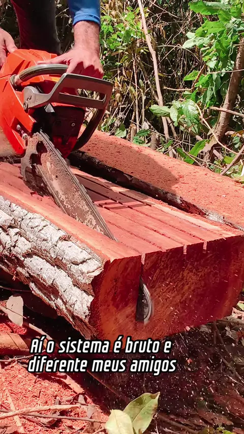 #motosserra madeira Massaranduba#corrente bem amolada cortando muito#serragem e desdobra prancha para ponte#visualizaçãokwai #vídeoviral