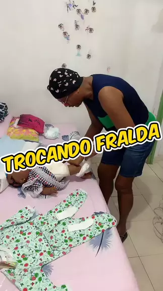 Mainha troca fralda da filha kk