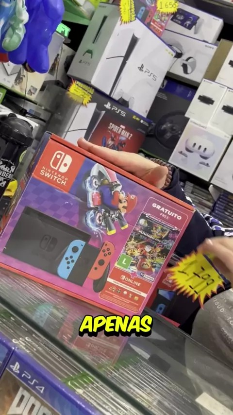 🎮 Nintendo Switch V2 com Mario Kart na Mar Games! 🚀 Garanta já o seu e divirta-se com essa combinação épica. 🌟 #NintendoSwitch #MarioKart #MarGames #Gaming #Promoção