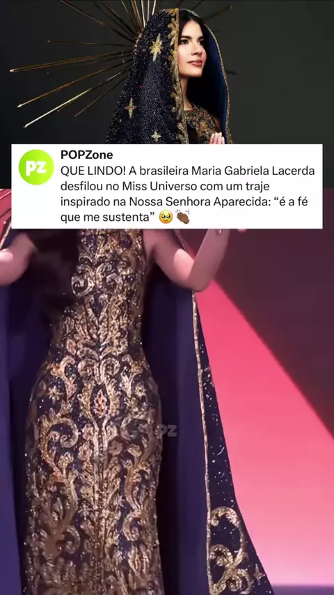 LINDA! A Miss Brasil Maria Gabriela Lacerda desfilou no Miss Universo com um traje inspirado em Nossa Senhora Aparecida. A proposta era homenagear a padroeira do Brasil e destacar um símbolo importante da cultura e da fé do país • Siga @popzone para mais conteúdos