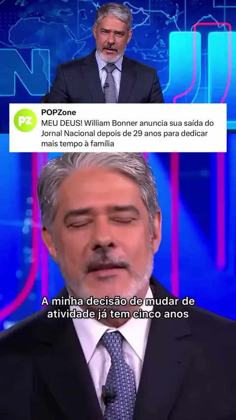 GENTE? William Bonner anuncia sua saída da bancada do Jornal Nacional, após 29 anos como âncora e 26 como editor-chefe, para reduzir a rotina e dedicar mais tempo à família e projetos pessoais. Sua despedida oficial será no dia 3 de novembro de 2025, e Cesar Tralli assumirá ao lado de Renata Vasconcellos. Em 2026, Bonner inicia nova fase como apresentador do Globo Repórter ao lado de Sandra Annenberg • Siga @popzone para mais conteúdos 🎥: @tvglobo