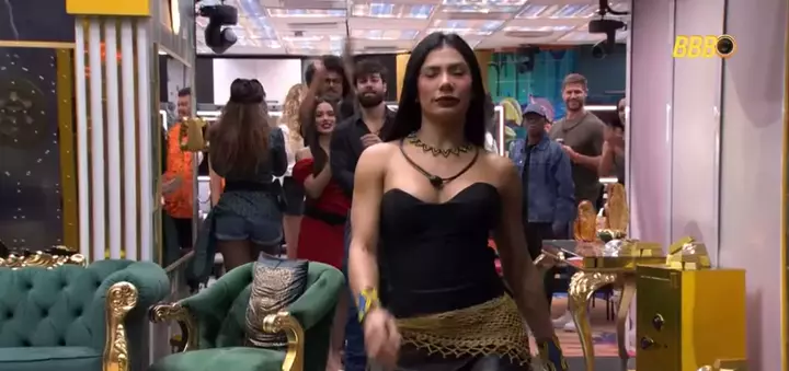 Doeu aí a surra de beleza? 😮💨 Marciele está prontíssima pra festa do líder @albertocowboy hoje. Gostaram da produção da mana? 🪇✨ #TimeMarciele #MarcieleMunduruku #MarcieleBBB26