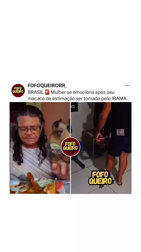 Siga @fofoqueirorr_ BRASIL🚨Vídeo da mulher entregando seu macaco de estimação para o IBAMA por ordem judicial viraliza na web. A mulher do vídeo é conhecida na rede sociais no tik tok como VOVÓ DAS COMIDAS. Ela teve o macaco( Pedrinho) tirado pelo IBAMA no último sábado. Nas redes sociais ela pede que as pessoas compartilhem para ela conseguir ter o Pedrinho/ Macaco de volta. 🎥: Internet/ @vovodascomidas