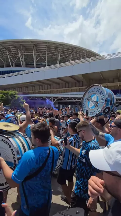 Torcida do Grêmio chegando na Arena para o deslocamento em direção ao Beira-Rio para o Grenal 441. #gremio #grenal #clássico #tricolor #rs