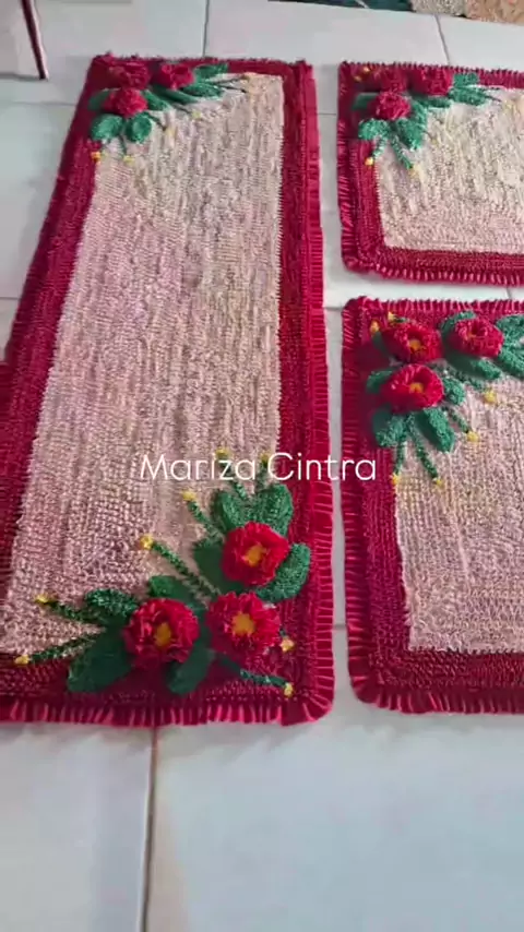 Jogo de tapetes frufru encomendas no WhatsApp 61 996206558 #casadecorada #tapetes #artesanato #frufru #decoração More