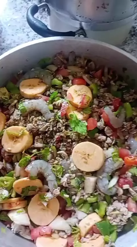 Moqueca de marisco com camarรฃo banana da terra.๐๐