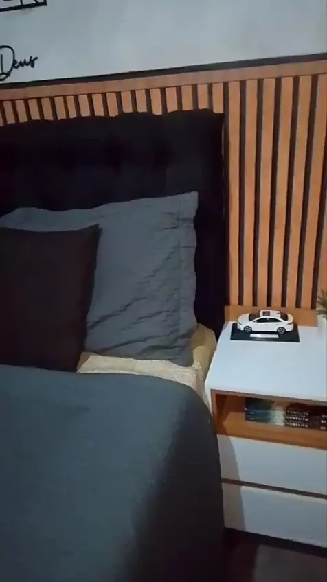 #mostrando como ficou a cabeceira da minha cama depois q coloquei papel de parede ripado.