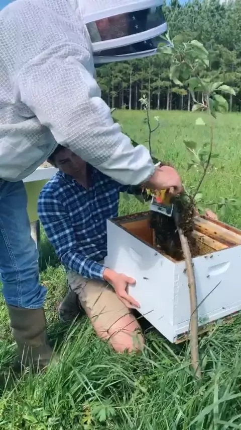 Parte 2 da maneira infalível de pegar um enxame, espero que você goste! Também sinto muito pelo vento # abelha # abelha # abelhas # apicultor # Carolina do Norte # salve as abelhas