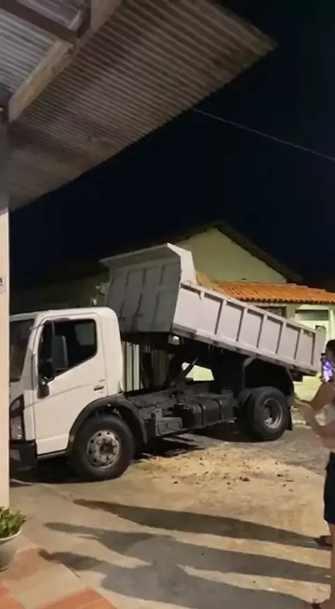 Caçamba basculante levanta sozinha e derruba teto #caminhao #motorista #casa