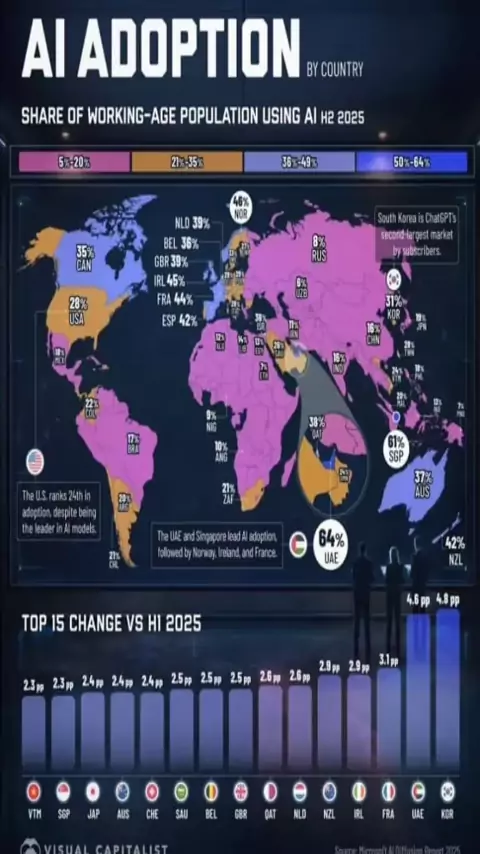 Tasas de adopción de IA por país AI adoption rates by country