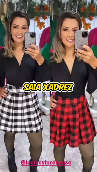saia xadrez feminina curta #shop
