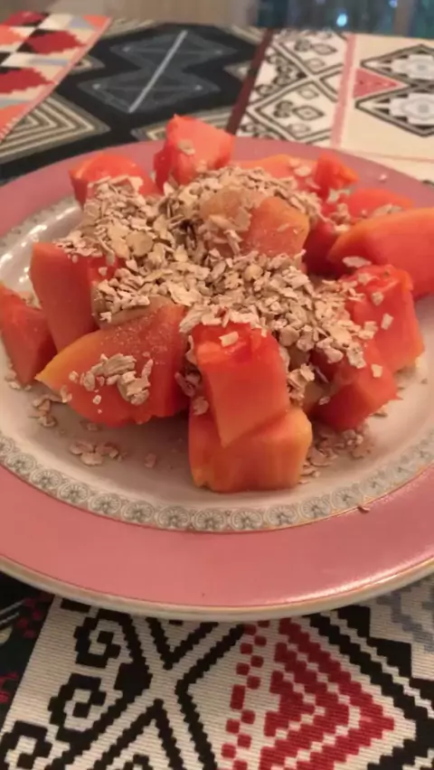 Mamão com aveia para o café da manhã ☕️ #mamão #aveia #intestino