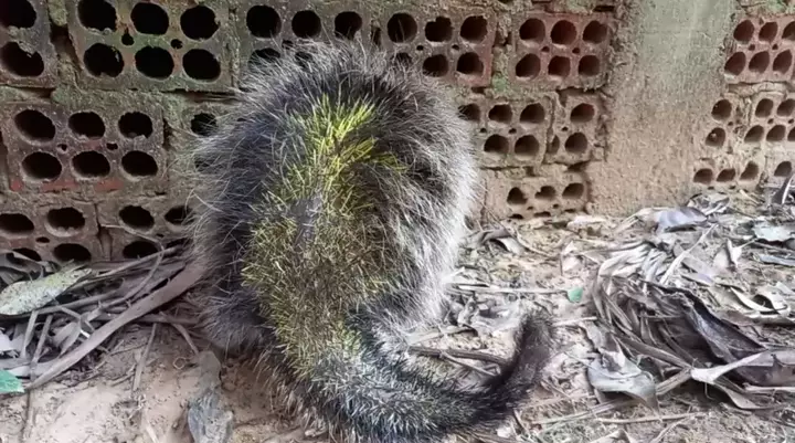 Ouriço atacando e jogando espinhos.