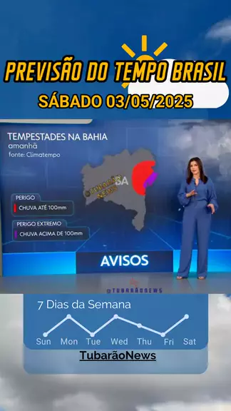 Previsão do tempo no Brasil sábado 03/05/2025, Bahia entra no quinto dia seguido de chuva no Leste do estado. Fonte: Jornal Nacional - 02/05/2025 #noticias #ultimasnoticias #PrevisãoDoTempo #Chuva #Bahia