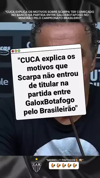 CUCA explica os motivos de Scarpa não ter entrado como Titular na partida entre GaloxBotafogo pelo Brasileirão #maisviews #atleticomg #galo #ultimasnoticias #viraliza