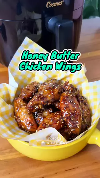 Bingung kalo masak chicken wings gitu gitu aja. Cobain resep ini deh simple dan enak banget. Saos nya berasa ada pedas manis, ada crunchy jadi satu. Masak ayamnya pakai Air fryer Cosmos Vanilia CAF 6600. Hasilnya matang merata, garing di luar, lembut di dalam. Honey butter chicken wings Bahan marinasi : 500 gr sayap ayam Dry rub Bahan saus : 2 sdm butter 2 siung bawang putih cincang 1 sdm brown sugar 1 sdm kecap manis 2 sdm saus sambal 1 sdt cabai bubuk 1 sdt cuka 1 sdm madu 1 sdm wijen